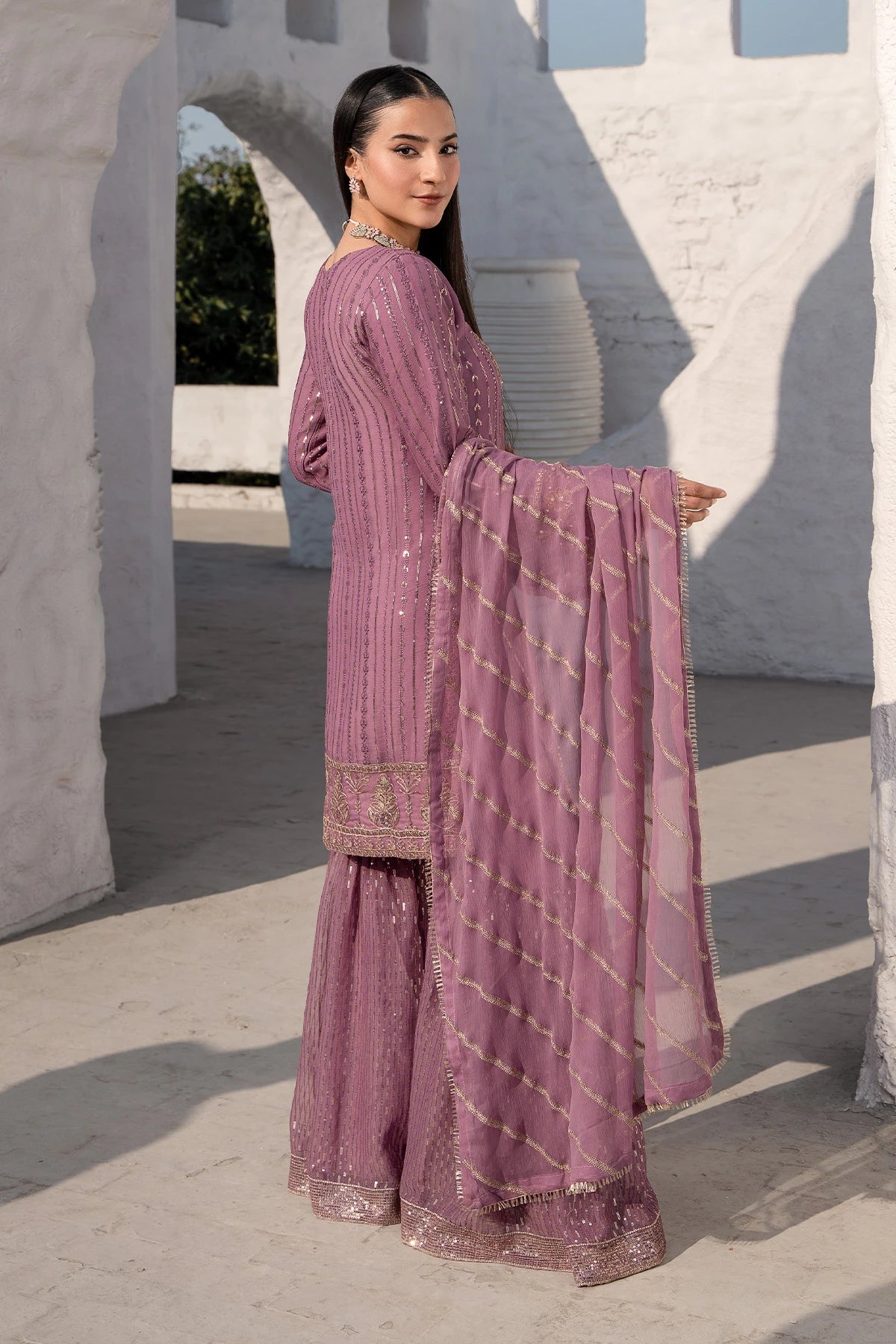 Dusty Pink Safa Threadwork And Sequin Sharara Suit -Design 3